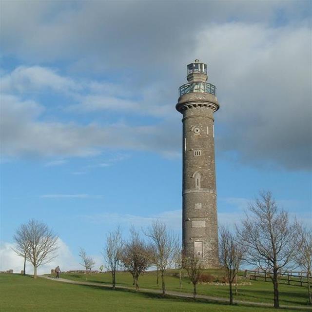 The tower is 100 feet high and has a lantern round the top similar to a lighthouse.