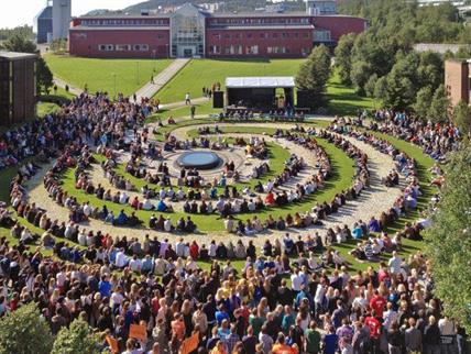 I denne guiden skal du bli bedre kjent med universitetsplassen og labyrinten ved Universitet i Tromsø. Denne plassen brukes ikke bare til bestemte arrangementer, men skaper en samleplass som først og fremst er et uteareal der studenter, besøkende eller ansatte kan sitte å slå av en prat eller drikke en kopp kaffe. Labyrinten brukes også hvert år ved semesterstart på høsten. Da settes det opp scene, det holdes taler og spilles musikk her. Labyrinten, universitetsplassens midtpunkt er dermed det første stedet de nye studentene blir kjent med.
