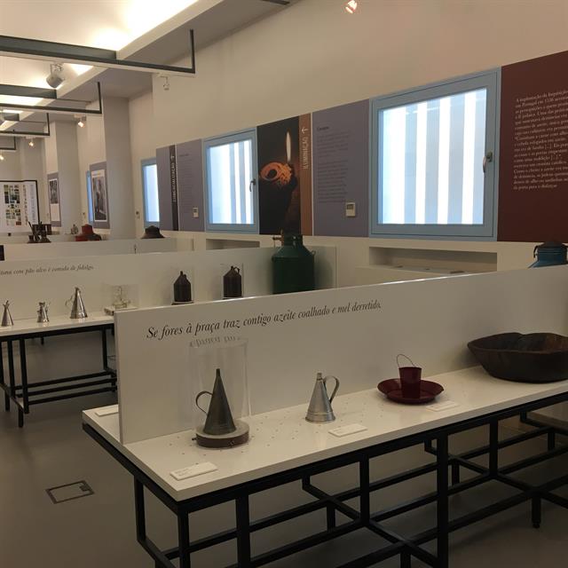 Objetos relacionados às utilizações do azeite e seu percurso até ao consumo final.