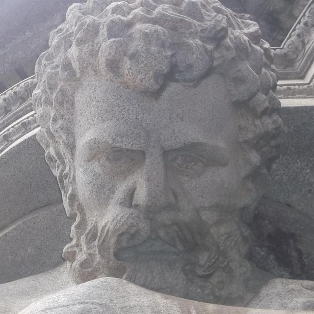 A stern stone face and some sumptuous details