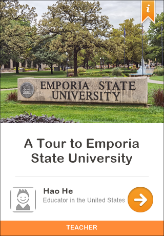 This is a virtual tour that shows you the campus of Emporia State University (ESU). We will walk on the campus and reach different stops (locations). At each stop, you will read text, listen to audio, watch videos, or view 360-degree photos to learn the history about the campus and the functions of each building. Now, please come with us!
