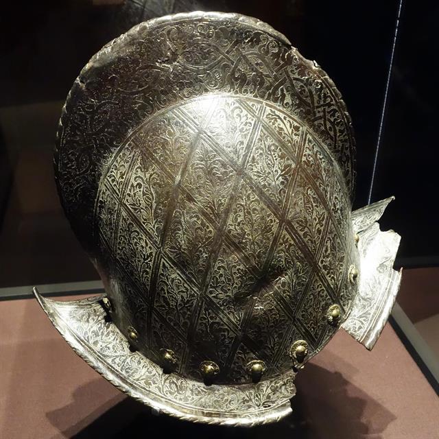 The helmet of Spanish conquistador and a map of the "island" of California.