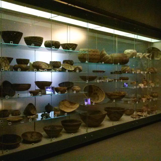 This display wall features baskets created by California Natives.